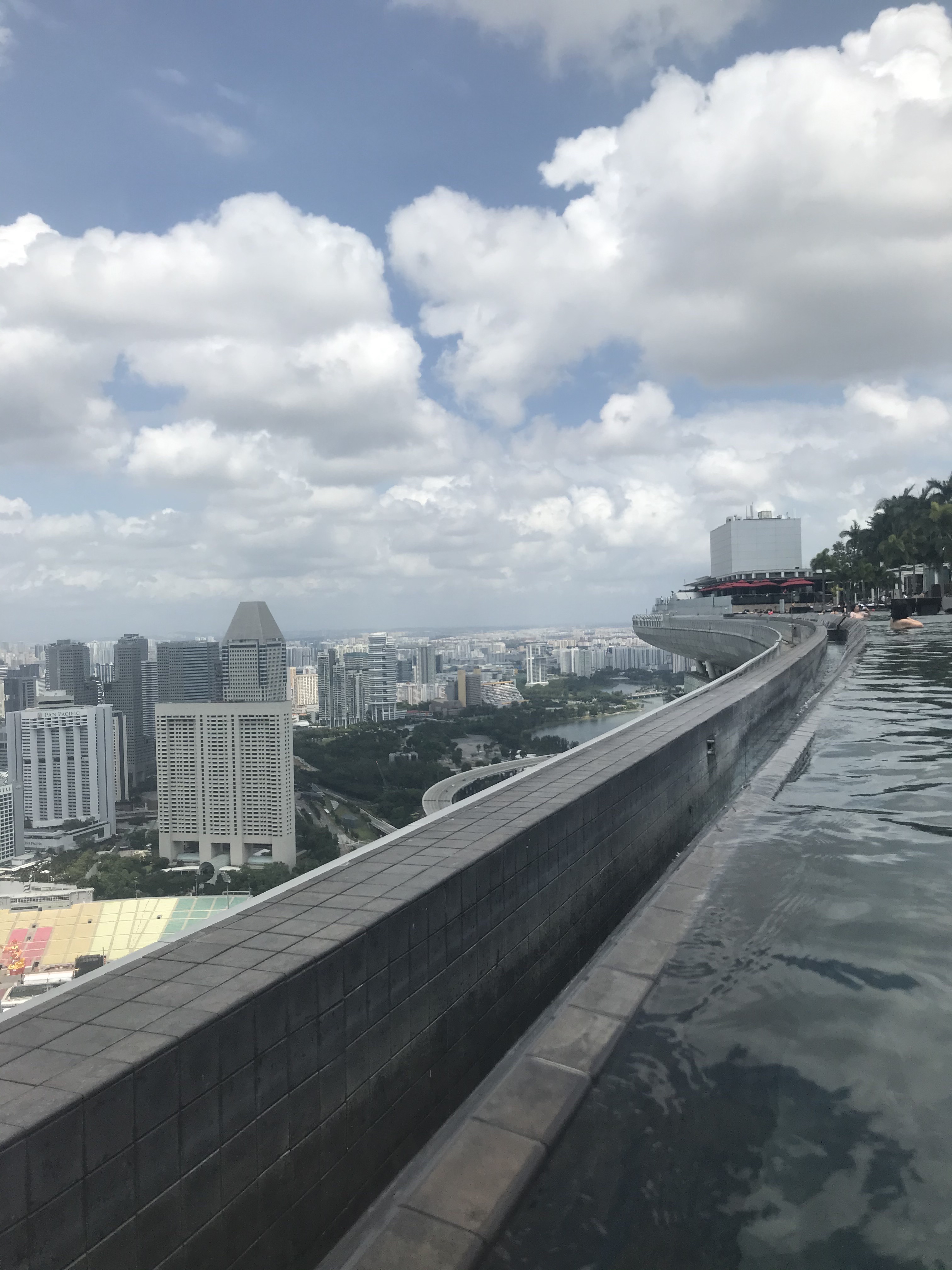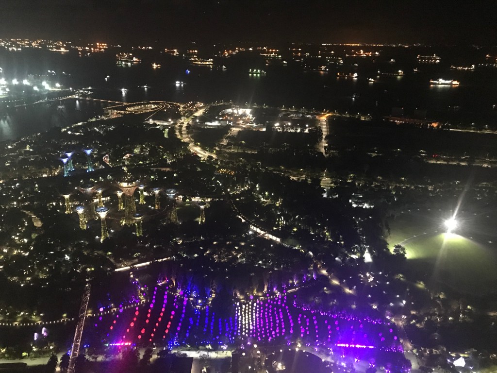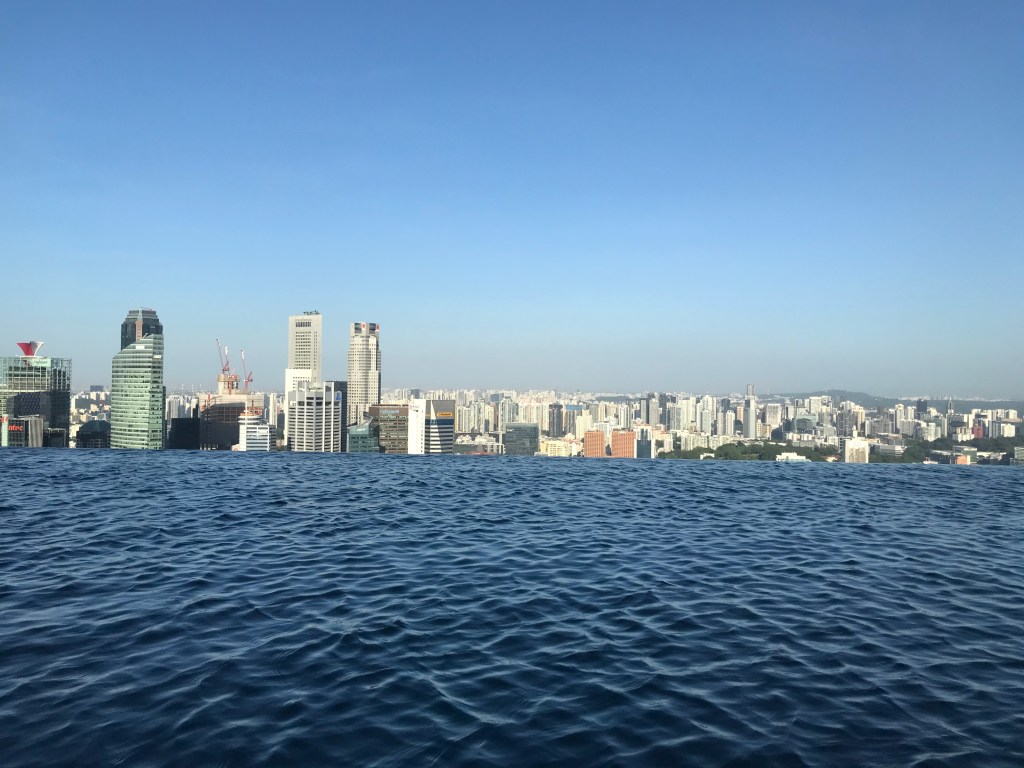 We got back to the hotel, and wondered around the massive mall that is attached to it. It is mainly designer shops and restaurants, but nice to look around. There is also a casino, but you needed your passport to enter so we didn’t bother. We went back up to the room and changed into our swimwear, and went up to the pool on the 57th floor. The infinity pool is what gives the Marina Bay Sands its ‘boat’ shape as you can see below. The water was actually surprisingly cold, but fine once you are in. The views are gorgeous and we had a nice afternoon sunbathing and using the pool and the jacuzzi’s on the other side of the deck.