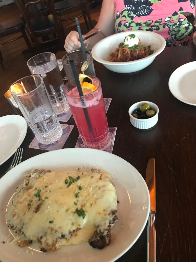We got a table inside at 6pm, ready for the sunset. I had a Singapore Sling (obviously) and Chicken Parmesan. My mum had spaghetti with meatballs. The food was really tasty, with large portions, and the ambience was good.