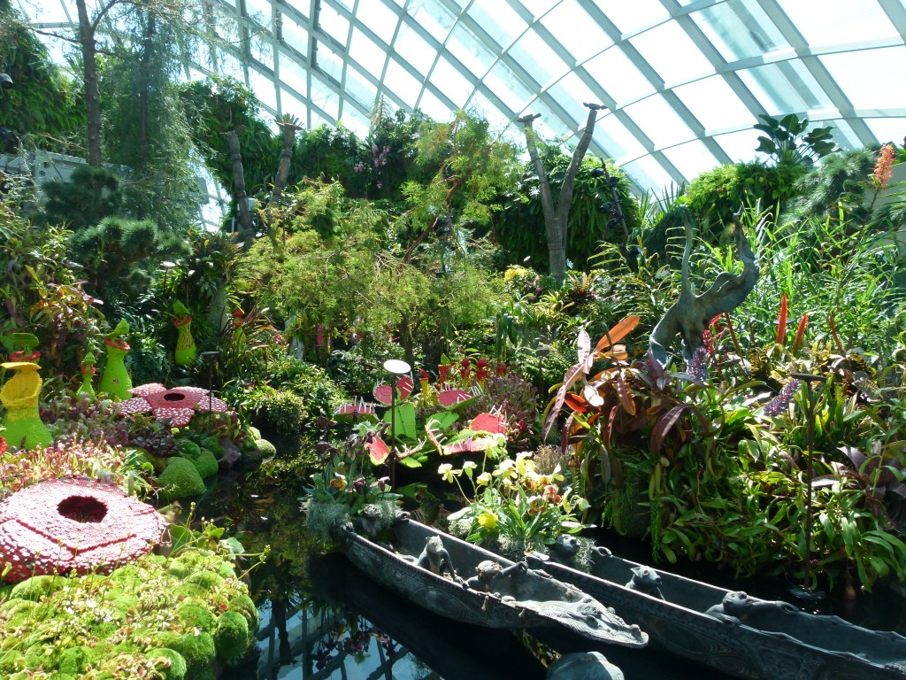 The Cloud Forest conservatory was my favourite. It was more humid than the Flower Dome, and as you walk in you are met with a spectacular man-made waterfall ‘wall’. At intervals mist is sprayed around the conservatory to keep the plants moist. You can explore the different levels of the waterfall by walking over various walkways, and it is a really nice experience.